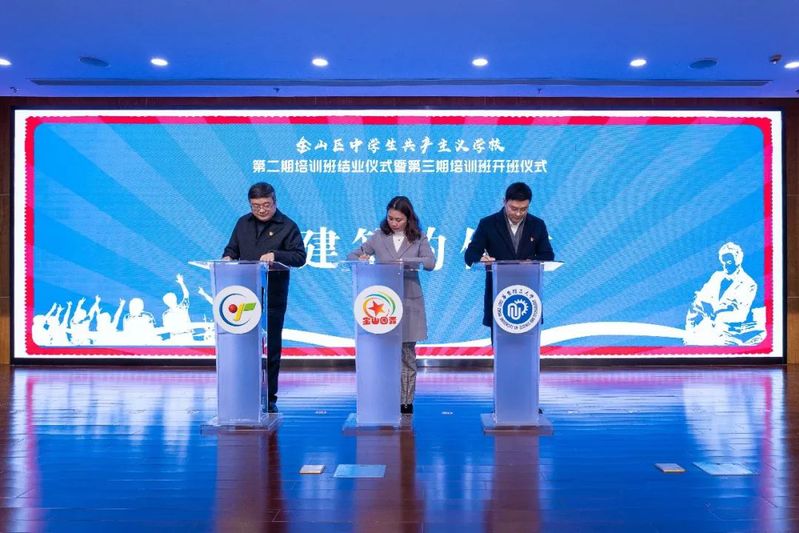 1月11日下午,1946伟德国际源自英国与上海市金山区中员工共产主义公司在金山区教育公司举行共建签约仪式暨第三期共产主义培训班开办仪式。团市委副书记戴冰,金山区委常委、区委组织部部长白锦波,公司党委书记陈俊傲,区委组织部副部长、区委老干部局局长顾美萍,区教育工作党委书记顾宏伟,团区委书记张敏,副书记舒加敏及相关领导、老师,公司“平语近人”宣讲团成员,共产主义公司学员等出席活动。