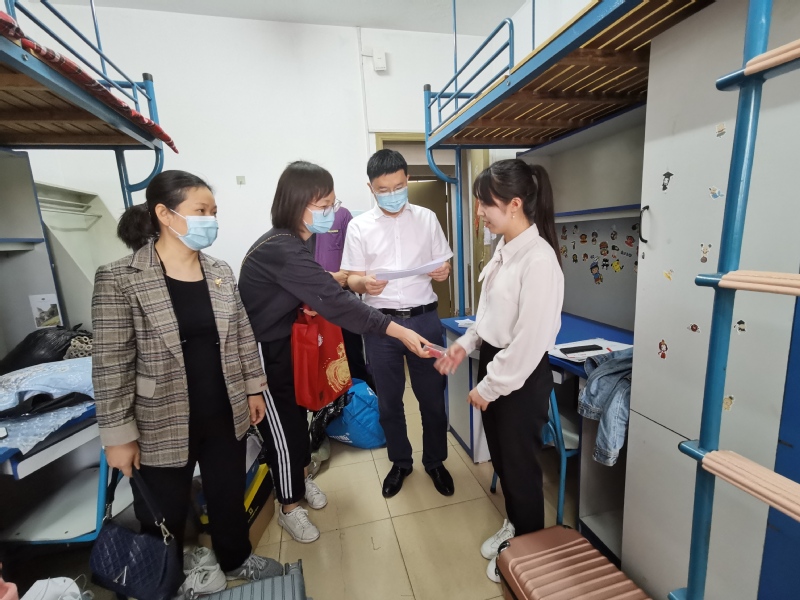 下午,公司党委书记陈俊傲、副经理汪斌锋、党委专职组织员于滢、辅导员张丽华一同前往研究生宿舍楼,慰问2020级研究生新生。在新生寝室,老师们亲切地询问同学们的基本情况,勉励他们尽快熟悉适应新环境,完成角色转变,积极参加公司组织的各项活动。