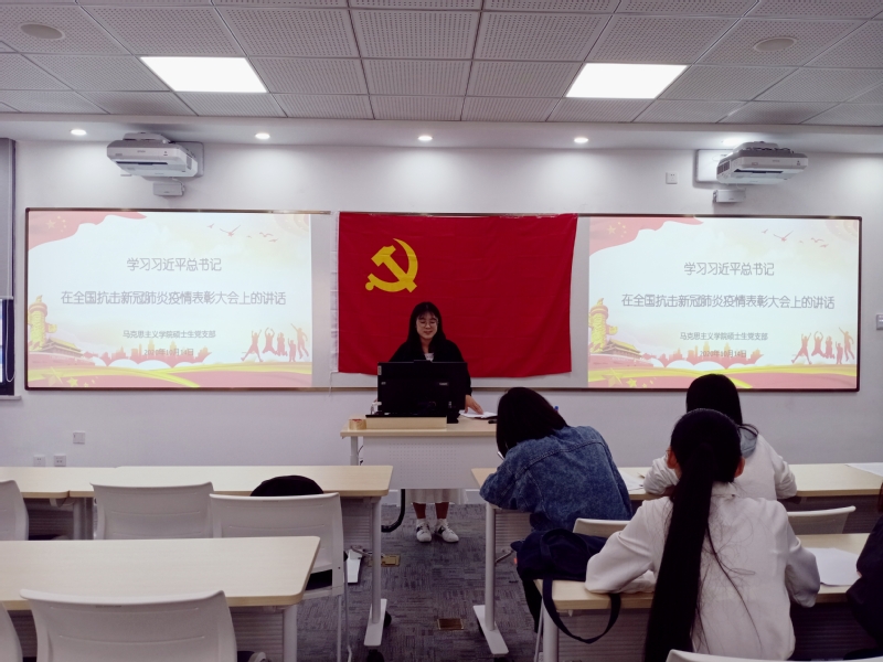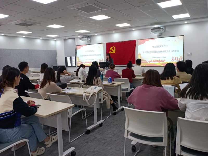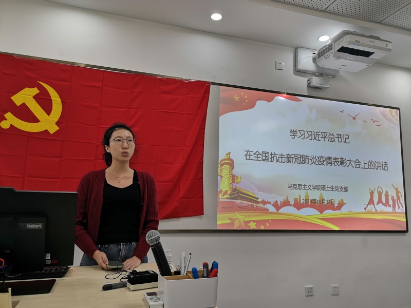 10月14日,1946伟德国际源自英国硕士生党支部在第一教学楼109室召开“学习习近平总书记在抗击新冠肺炎疫情大会上的讲话精神”专题组织生活会,党支部书记高苏沛同志主持会议。