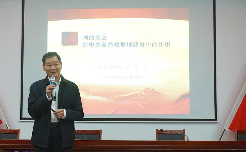 中共龙岩市委党校原常务副董事长江维力教授以《闽西地区在中央革命根据地建设中的作用》为题给研修班成员授课。江维力介绍了龙岩市基本市情,并结合闽西革命根据地创建的背景,讲述了党在闽西革命根据地建设实践过程产生的许多治党治军的方法策略,深情地表达了闽西儿女为革命义无反顾的牺牲精神,论述了闽西地区在中央革命根据地建设中的重要作用。江维力勉励大家铭记初心、勇担使命,传承好红色基因,为国家和社会做出更大贡献。报告会过程中,学员们与江维力进行了热烈地互动交流与学术研讨。