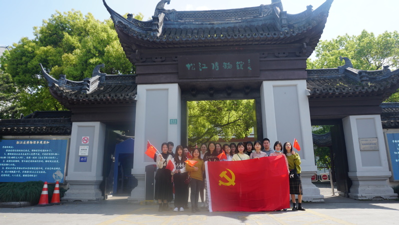 广富林的文旅之行后,支部成员们共同乘车来到了松江博物馆参观学习。据馆内介绍,五千多年以前,今松江区已经有先民在此劳作生息。古代松江经济富庶、人文荟萃,名人辈出。硕士生党支部书记高苏沛感叹道:原来松江的历史也如此悠久,有着丰富的文化内涵,涵养着这方水土和代代子民。正是古松江的深厚底蕴成就了现代松江。松江博物馆内馆藏丰富,陶瓷器皿和文玩杂件居多,折射出古代松江社会的缤纷色彩,从各色文物可以看出,古代的松江先人起居日用颇为讲究,不仅追求生活质量,也看重艺术氛围。松江陶瓷、书斋摆设、金玉饰件等展品无一不闪烁着古人智慧,吸引支部成员们仔细观赏。