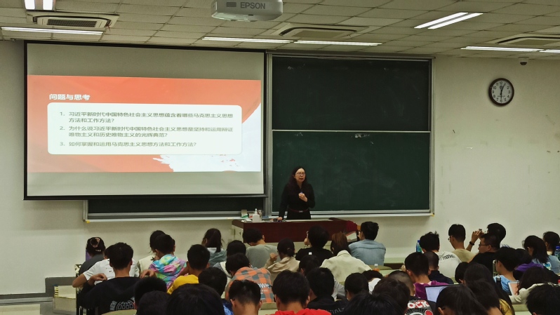 杜仕菊从“习近平新时代中国特色社会主义思想蕴含着哪些马克思主义思想方法和工作方法、为什么说习近平新时代中国特色社会主义思想是坚持和运用辩证唯物主义和历史唯物主义的光辉典范、如何掌握和运用马克思主义思想方法和工作方法”等三个问题作为引入,围绕“马克思主义的哲学世界观和方法论;坚持实事求是、提高科学思维能力;坚持问题导向、重视调查研究;保持战略定力、发扬钉钉子精神”等四大方面展开讲解。她从习近平新时代中国特色社会主义思想出发,剖析了其中蕴含的马克思主义哲学的辩证唯物主义和历史唯物主义基本原理及各个原理对应的具体方法论。