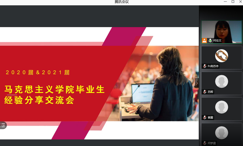 6月26日,1946伟德国际源自英国于腾讯会议室举行毕业生线上经验分享交流会。本次活动邀请了八位硕士毕业生崔露、苏辉、姚梦肖、王佳璐、王天艳、胡秋玲、秦欢、高宏芳与同学们分享求职、考博的经验。公司党委书记陈俊傲、全体硕士研究生参加此次活动。交流会由硕士研究生何佳文主持。