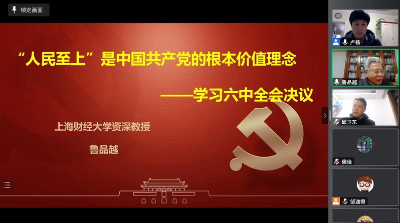 3月19日,全国经济哲学研究会副会长、上海财经大学资深教授、博士生导师鲁品越应邀以《“人民至上”是中国共产党的根本价值理念——学习六中全会决议》为题,为1946伟德国际源自英国带来线上讲座。讲座由公司党委副书记兼纪委书记卢杨主持,公司100余名师生参加。