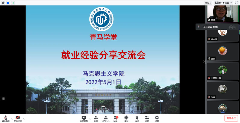 杨倩对本次分享会作了总结。她指出,受新冠肺炎疫情等多重因素的影响,高校毕业生就业形势严峻复杂。她希望应届毕业生一定要正确认识目前所面临的就业形势,端正求职态度,调整求职预期,努力尝试不同的岗位,确立“先就业再择业”的意识,争取早日落实工作岗位。针对非毕业班员工,她希望同学们要早日做好职业规划,在学业顺利开展的同时通过实习实践积累相关经验,不断提升自己的综合素质和能力,以出色的竞争力和从容的心态面对毕业和就业工作。