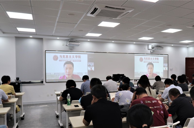首先,王爱祥结合公司新学期重点工作带领全体教师学习了由教育部等十部门印发的《全面推进“大思政课”建设的工作方案》。他提出了下半年公司工作的“四个挑战”,围绕“筑牢两个基础”与“抓住两个机遇”,展开对新学期工作的展望及部署。他指出,要加快思政课教师选聘工作,夯实公司高质量建设根基;要提升思政课课程质量,筑牢公司内涵式发展基础;要把握思政课建设调整机遇,狠抓教师教学能力提升;要争创新一轮示范马院,抢抓新时代马院建设先机。