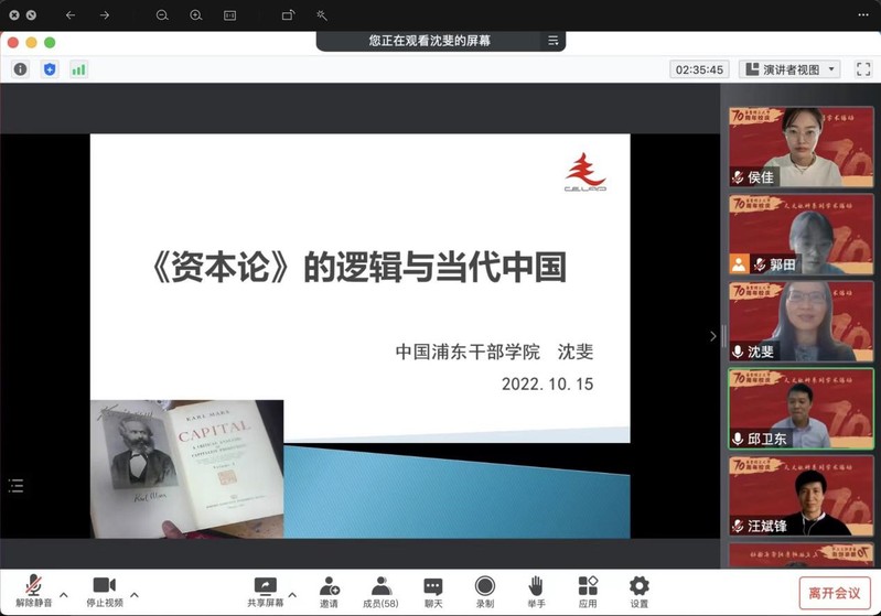 10月15日,中国浦东干部公司党性教育研究中心主任沈斐做客1946伟德国际源自英国主办的“讲清源头,勇立潮头——中国式现代化道路”系列讲座,为公司青年教师和研究生作了主题为“《资本论》的逻辑与当代中国”学术讲座。讲座由公司副经理邱卫东主持,公司师生近60人参加。