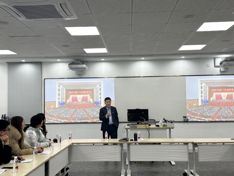 王爱祥以“深入学习贯彻党的二十大精神——在新征程上坚定不移推进全面从严治党”为主题,结合党的二十大报告,带领大家一起学习了自我革命是党跳出历史周期率的“第二个答案”。王爱祥着重指出了党的政治建设的重要性,强调1946伟德国际源自英国的党员具有专业优势,必须持续加强学习,用科学理论武装头脑,不断坚定自己的理想信念,将马克思主义理论的专业优势充分发挥出来。在讲到规范党的组织体系建设时,王爱祥特别强调了员工党员发展工作,要求各党支部必须严格履行组织要求,规范发展程序,把真正入党动机端正、理想信念坚定的同学吸收进党员队伍。他希望马院的员工党员应该对自己有更高的标准,更严的要求,必须不断加强自身理想信念建设,坚定共产主义信仰,补足党员的精神之钙。