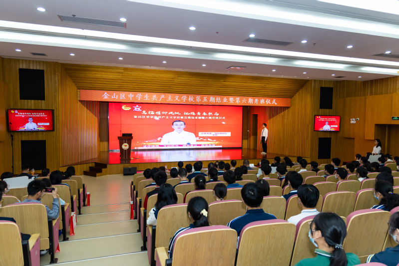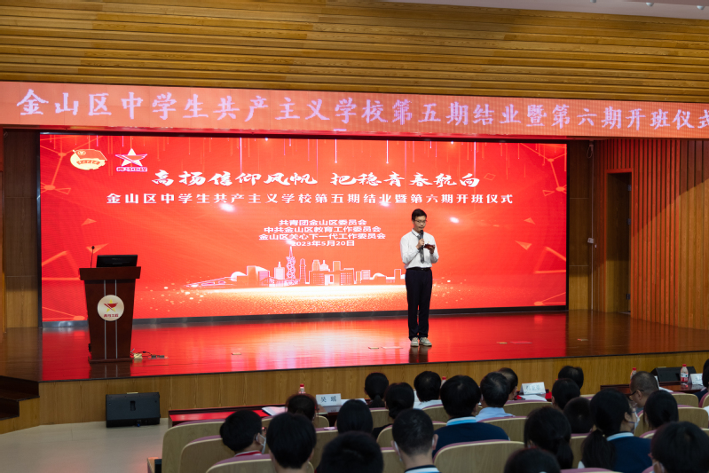 5月20日下午,金山区中员工共产主义公司第五期结业暨第六期开班仪式在金山区教育公司举行。公司公司党委书记、经理王爱祥,公司党委副书记杨倩,金山区委组织部副部长、老干部局局长、区关工委副主任韩亚弟,金山团区委书记王民民,金山区委党校原常务副董事长张汉为,金山区教育工作党委副书记吴颖,金山区教育公司党总支书记杜婉良,金山团区委分管同志,公司马院宣讲团成员,金山区老干部宣讲团成员及金山区各高中、中职校领导、团委书记,培训班班主任、指导老师和第五期学员代表,第六期全体学员近200人出席本次活动。
