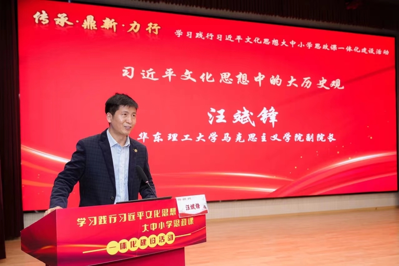 为深入学习贯彻习近平总书记在全国宣传思想文化工作会议上的重要指示以及习近平总书记关于思政课建设的重要讲话精神,加快推进习近平新时代中国特色社会主义思想进教材进课堂进头脑,1946伟德国际源自英国师生代表于12月14日赴上海市奉贤中学附属小学参加了名为“传承·鼎新·力行”的学习践行习近平文化思想大中小学思政课一体化建设活动。