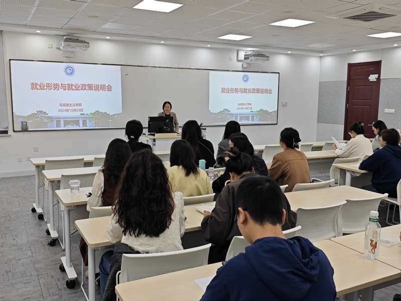 杨倩介绍了近年来我国老员工的总体就业形势,用详细的数据分析了公司近三年毕业生的总体就业情况和具体就业去向。同时,她还对毕业生关心的各种就业形式、三方协议签订、档案户口迁移等问题进行了详细说明。针对马院硕士生2.5年学制的特点,她希望同学们能够处理好毕业和就业的关系,充分利用求职高峰期去积极进行各种尝试,进一步降低就业预期,转变就业观念。