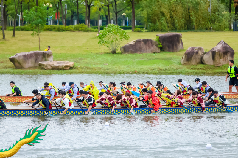 公司党委书记王爱祥来到比赛现场,为公司参赛队伍加油鼓劲。随着发令声响,公司全体参赛队员齐心协力挥动手中的木浆,龙舟如离弦之箭在水面上跃进。他们奋力拼搏,挥桨斩浪,百舸争流,乘风破浪!