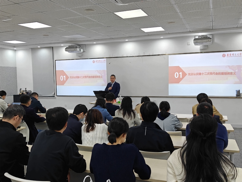 宋来从“充分认识第十二次党代会的里程碑意义”“准确把握党代会报告的丰富内涵”“贯彻落实党代会精神的实践要求”三方面,深入讲解了公司第十二次党代会报告。宋来强调,公司第十二次党代会全面总结了校第十一次党代会以来的发展成就,系统总结了建校72年来的优良传统和宝贵经验,全面分析了公司发展面临的形势,系统谋划了公司发展的“三步走”目标、“四化”战略、“两新两大”发展布局和十项重点举措。他希望马院全体教职工要充分认识校第十二次党代会的里程碑意义,统一思想、凝聚共识、汇聚力量,贯彻落实好党代会精神的实践要求,紧紧围绕思政课铸魂育人的使命,建强马克思主义理论学科,建好马克思主义研究院,不断增强思政引领力,为把公司建设成为多学科协同发展、特色鲜明的世界一流大学贡献马院人的力量。